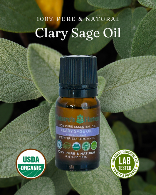 Nature’s Haven Clary Sage Essential Oil is 100% pure and natural, USDA-Certified Organic, crafted without any synthetic fillers or additives.